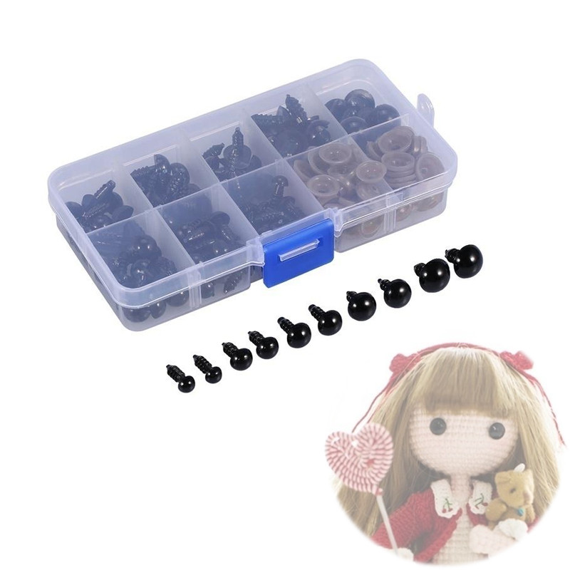 - Різноманітність розмірів: у комплекті очі діаметром 6 мм, 8 мм, 9 мм, 10 мм, 12 мм (по 20 шт кожного розміру)